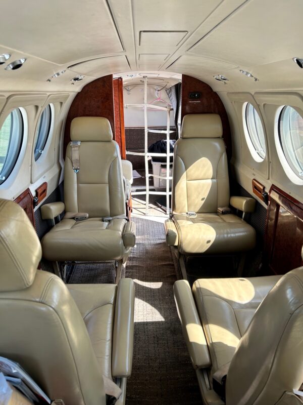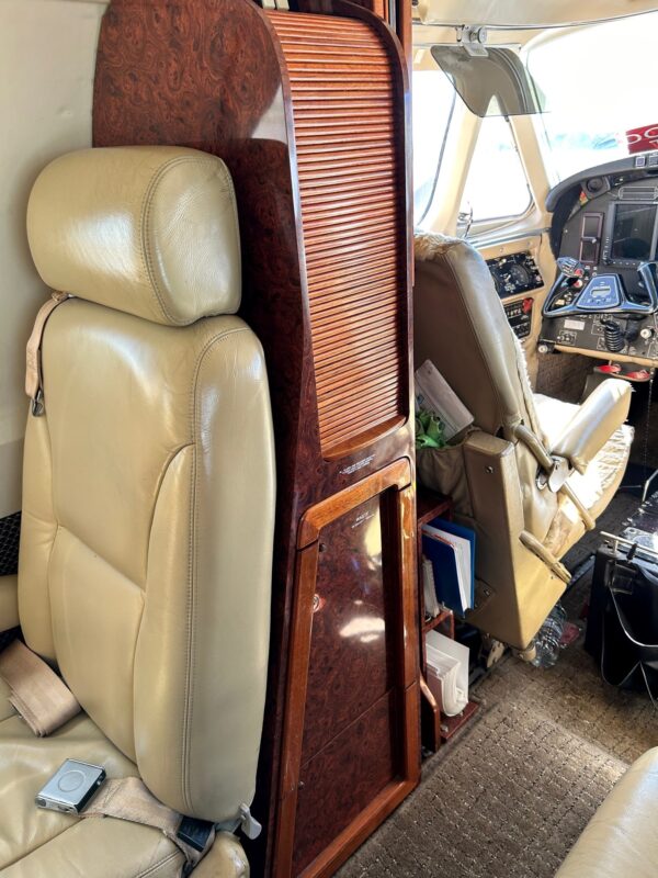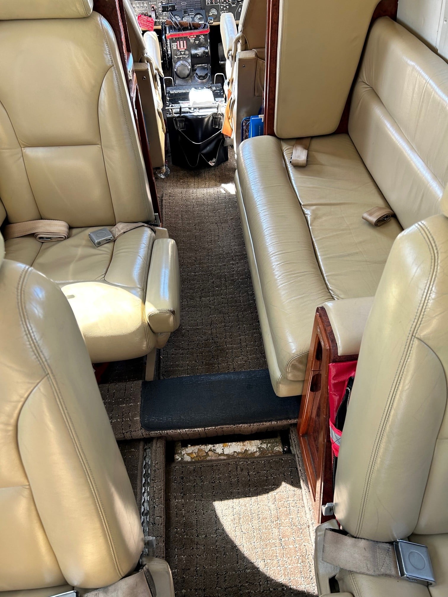 New in 2011, Seats refurbished and New Carpet August 2016. Safari leather seating, forward divan, forward aft-facing chair, aft 4-place club, aisle-facing belted lav seat, Vasco onyx lower sidewalls, high-quality onyx carpeting, Forward refreshment center, Chestnut burlwood cabinetry, Mid-cabin Pyramid cabinet.