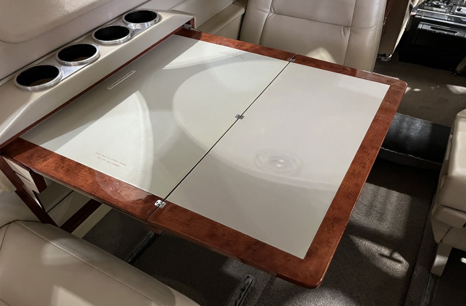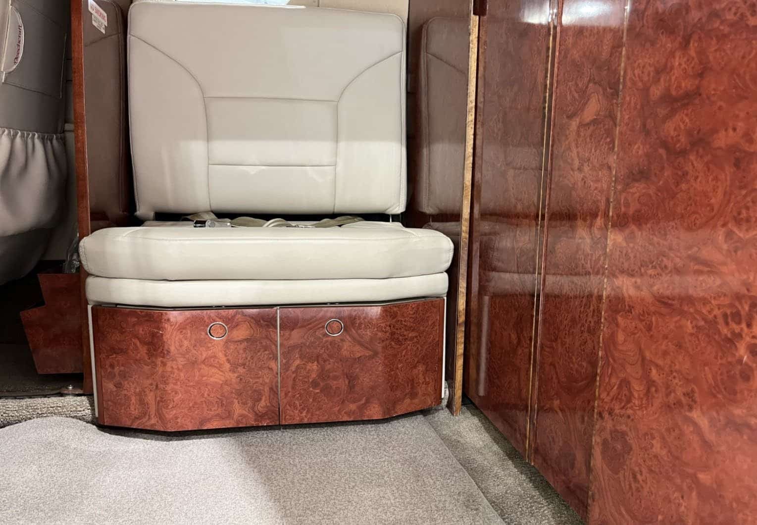 All New Leather 2018, Excellent Condition! Light Tan Leather with Mohagany Woodwork on Cabinets and Dividers