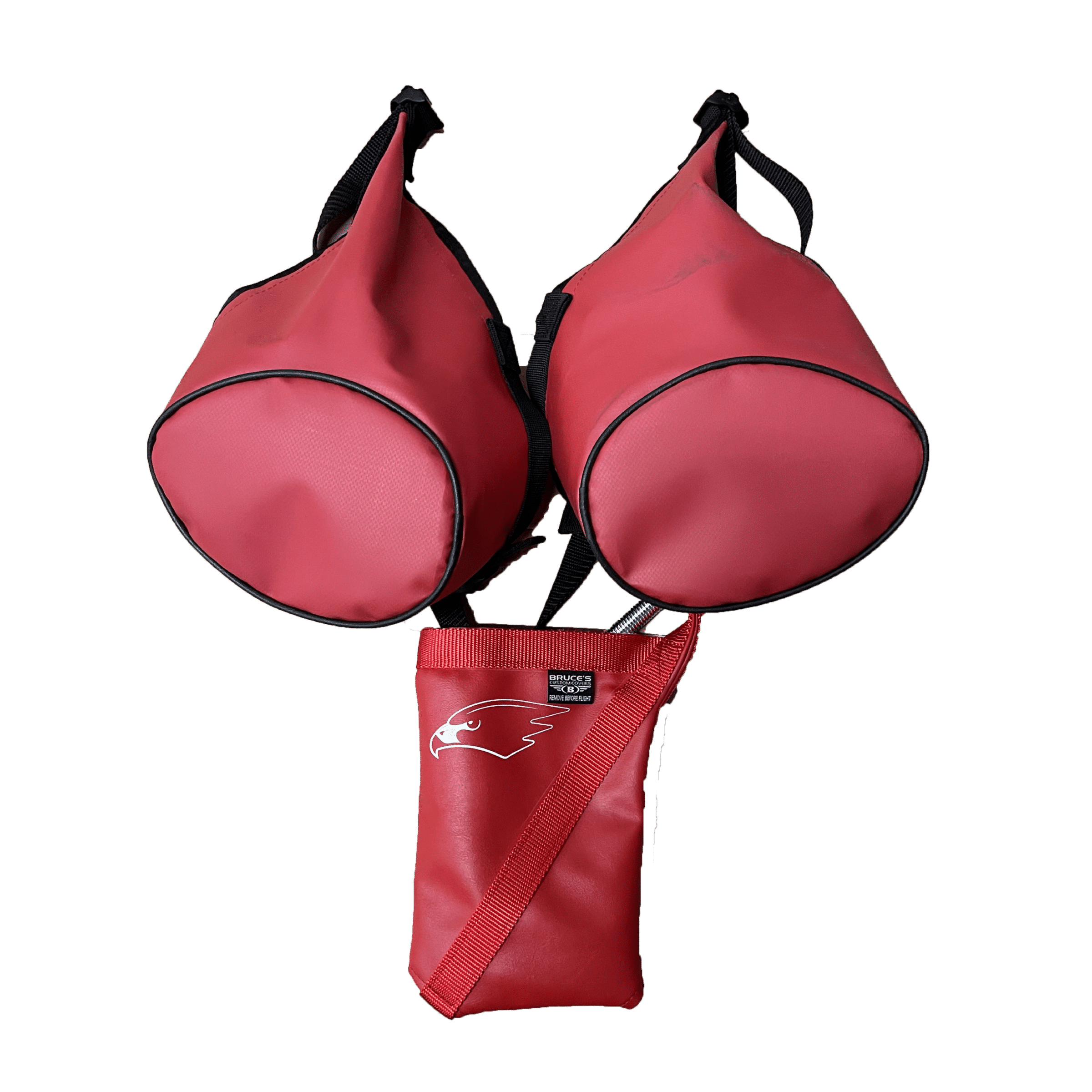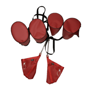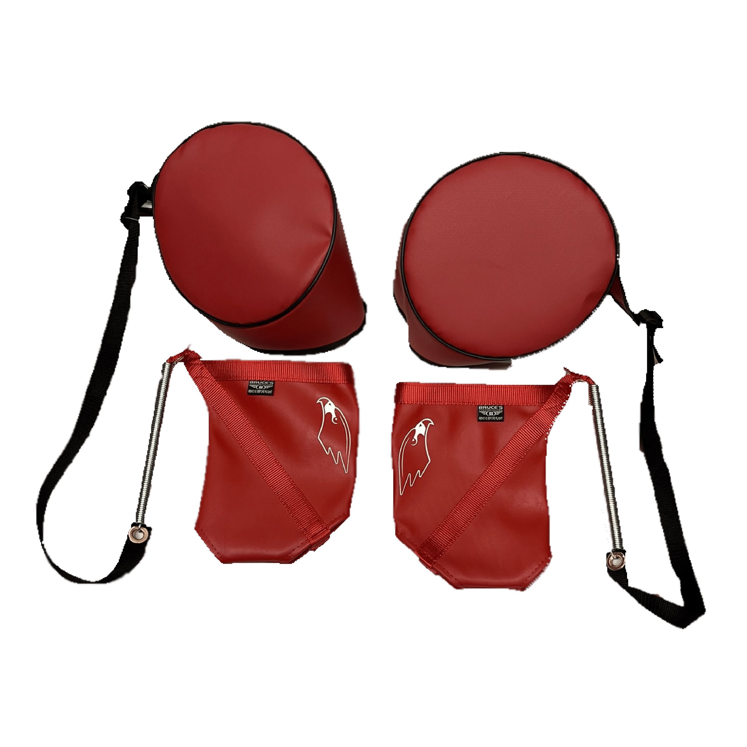 Heavy duty red vinyl material with thick nylon webbing that attaches the exhaust covers to the prop sleeve.