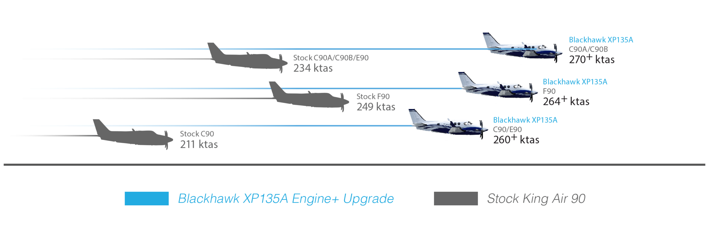 The journey to a safer, higher-performing, more reliable King Air 90 starts with a Blackhawk Engine+ Upgrade. Enjoy improved performance, increased reliability, a higher safety margin, and significant return on investment over PT6A-21 stock engines.
